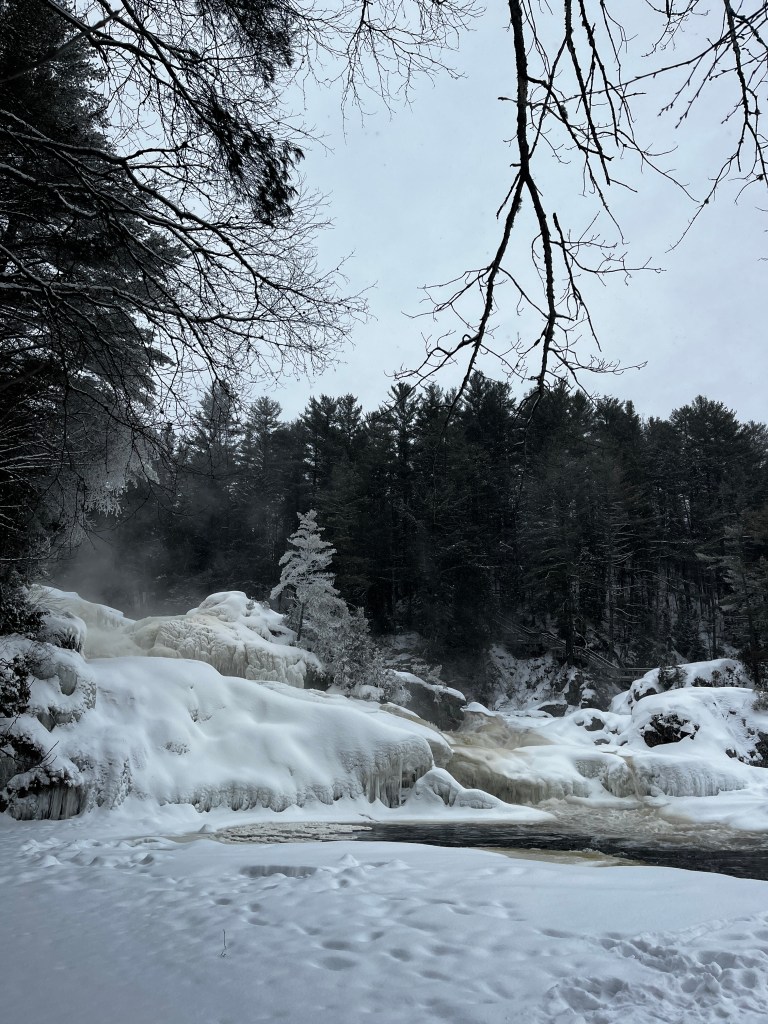 The trails in the winter are designated for either fat biking (available for rent at the welcome centre) or walking, so your hiking trail options are a bit more limited in the winter than in the summer. However, the walking trails lead you along the stream to see all the waterfalls. Make sure to dress extra warm and maybe bring a picnic, because you will want to sit and take in the views. Plus, dogs are welcome (for a fee of $6)!