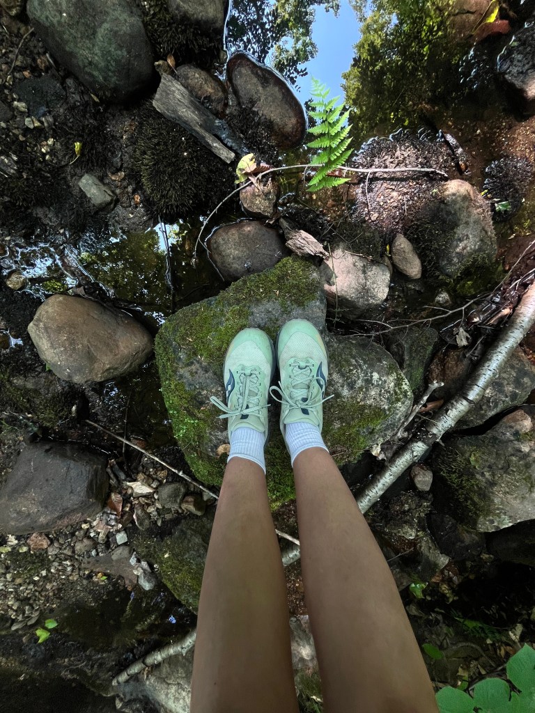 I alternate between prioritizing lightweight shoes or shoes with good traction depending on my training goals. When training for road races, I often opt for a more lightweight pair of shoes. I find that my trail runners can feel heavy on my feet, particularly on longer runs. In the summer when I am often camping or at cabins, I make sure I have trail running shoes that work on all types of terrain.